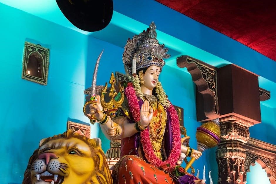 Despite PDF access issues, remember the Kavacham’s essence: a powerful hymn honoring the totality of the Goddess, offering solace and strength to all devotees.